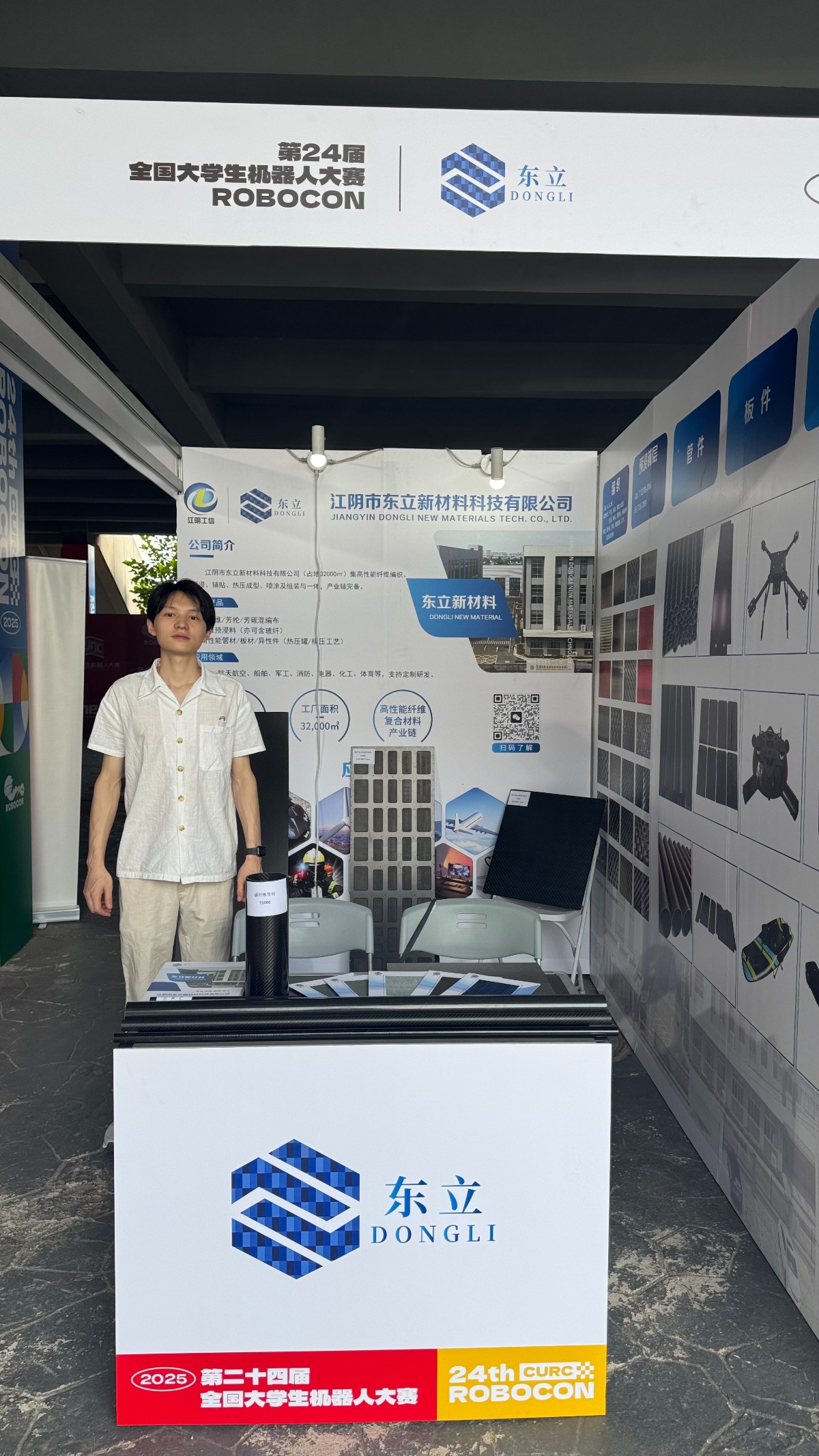 În calitate de expozant invitat, Jiangyin Dongli New Materials Technology Co., Ltd. și-a activat rapid mecanismul de răspuns în caz de urgență după ce a aflat despre deteriorarea echipamentului celor două echipe. Compania a alocat imediat materii prime de înaltă performanță din fibră de carbon, a organizat experți tehnici peste noapte pentru a analiza structurile și soluțiile de reparații de proiectare și s-a angajat să ofere suport gratuit de urgență pentru competiție.